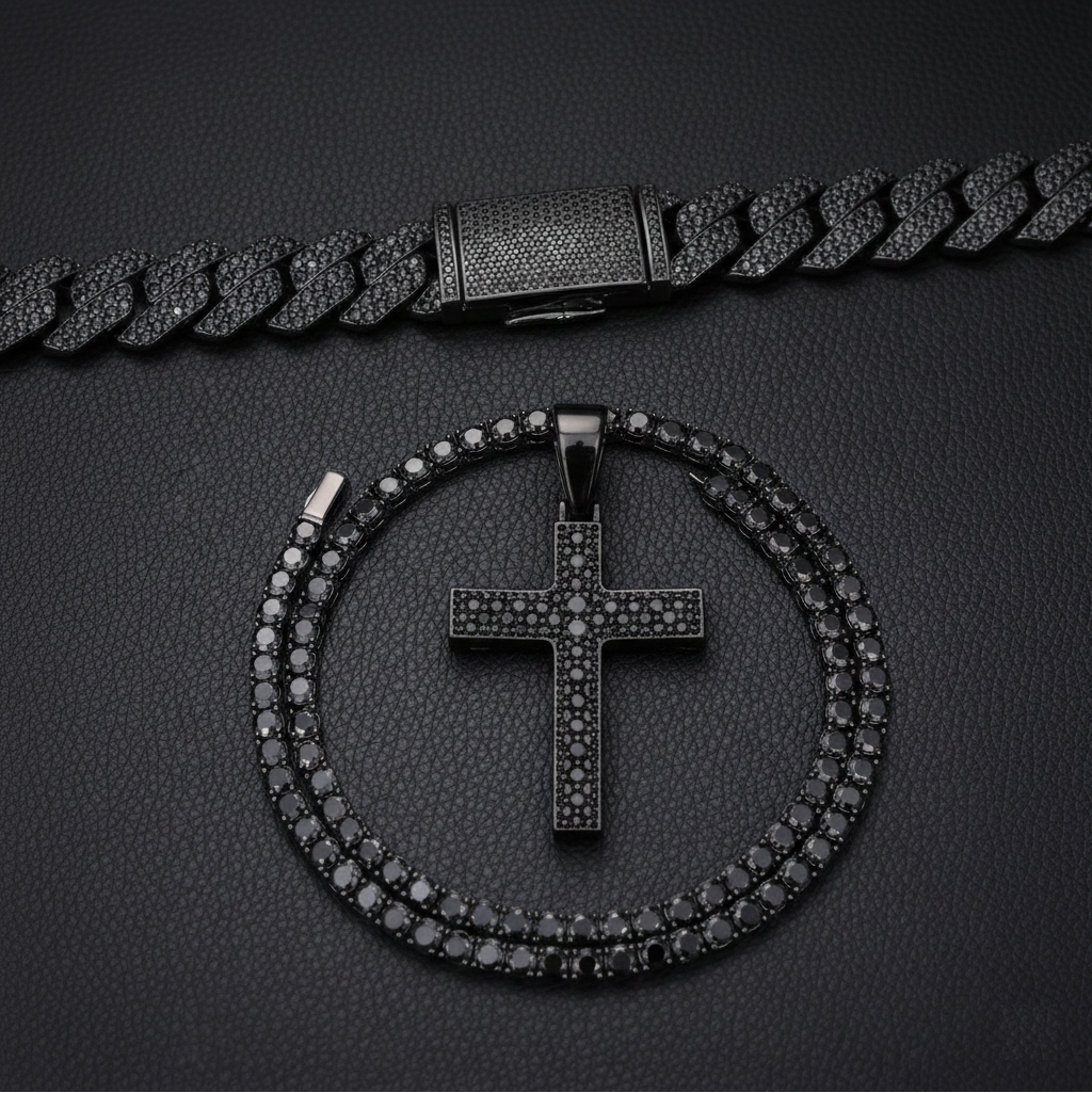 Black Moissanite Chain Collection | Tennis & Cuban Link Chains for Men