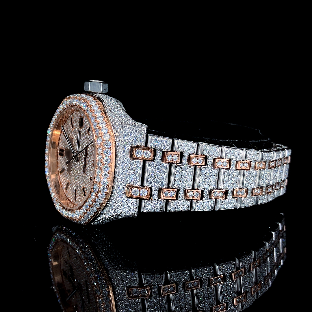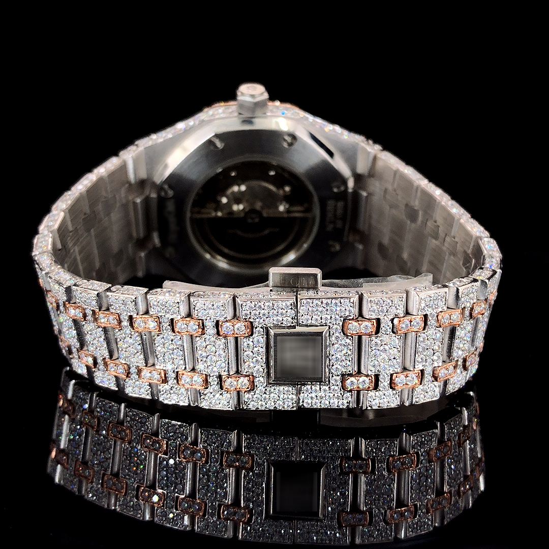 Fully Iced Out  Automatic Moissanite Watch For Men. Two-tone luxurious timepiece for hip-hop Lovers.