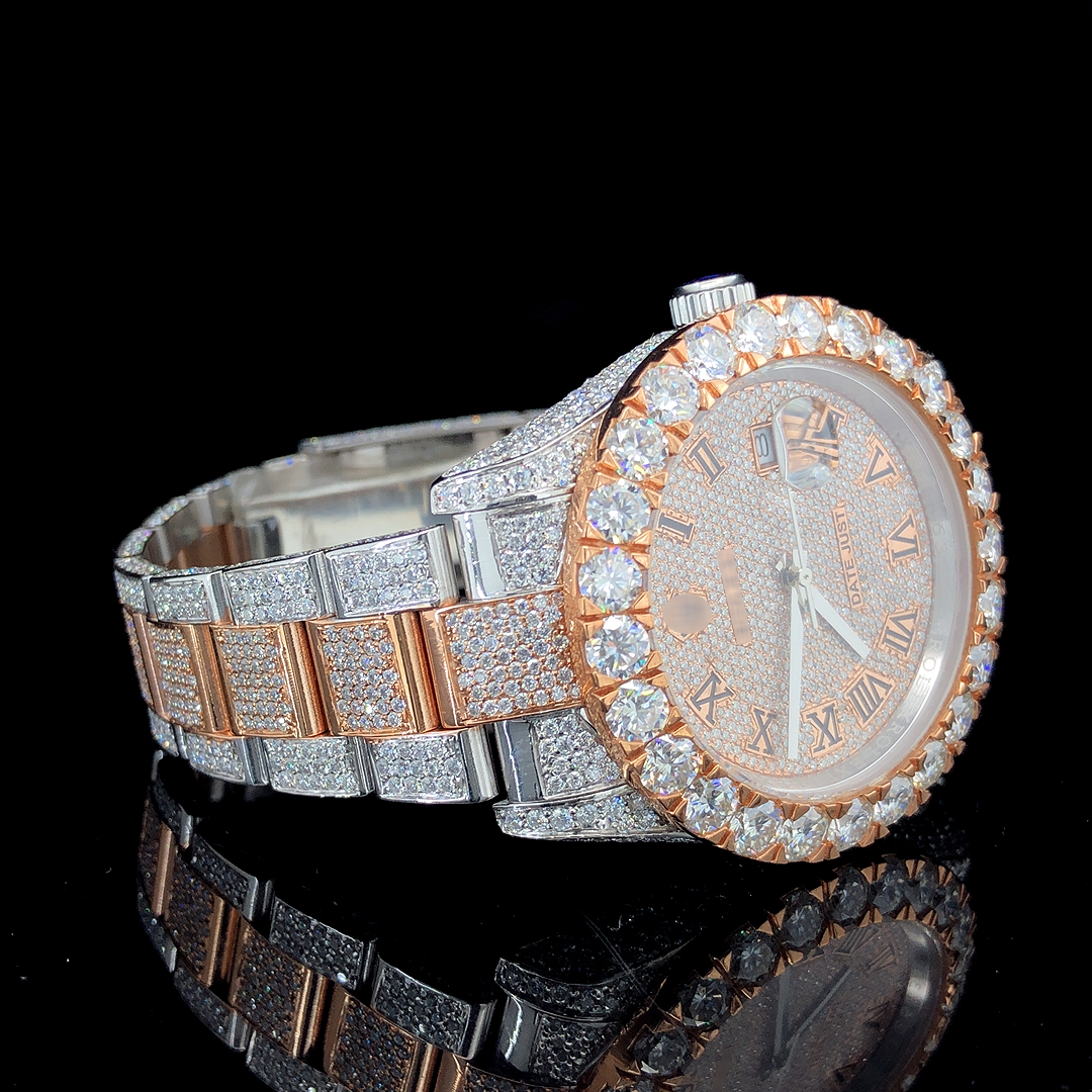 Royal Iced Out Moissanite Watch For Men – Rose Gold
